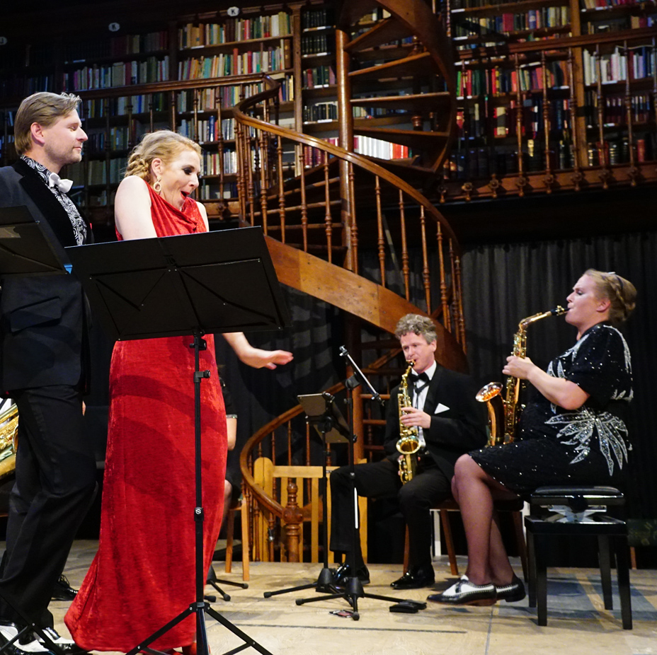 Het Berlage Saxophone Quartet en zangers Karin Strobos en Martijn Cornet brengen in een avondvullend programma een keur aan liederen uit dit woelige interbellum: het tijdperk van de opkomende jazz, bigbands en natuurlijk de opmars van de saxofoon. George Gershwin, Cole Porter en Kurt Weill passeren de revue in arrangementen van Wijnand van Klaveren.