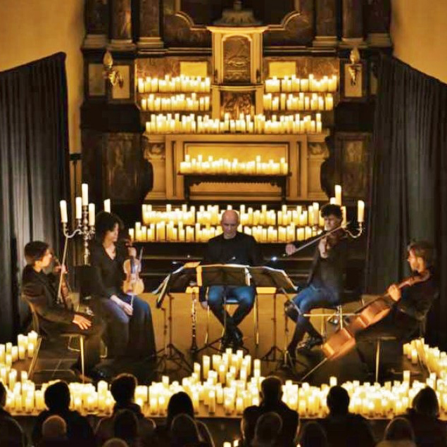 Slotconcert met veel romantische, klassieke muziek bij intiem kaarslicht.